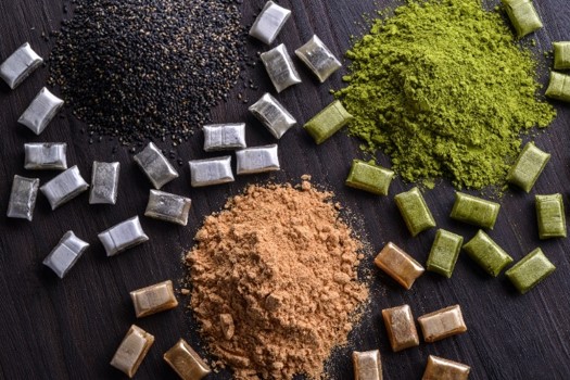 砂糖(国内製造)、水飴、大豆きなこ(きなこ(遺伝子組み換えでない)、発酵きなこ(脱脂大豆(遺伝子組み換えでない)、醸造酢、種麹))、植物油脂、抹茶
